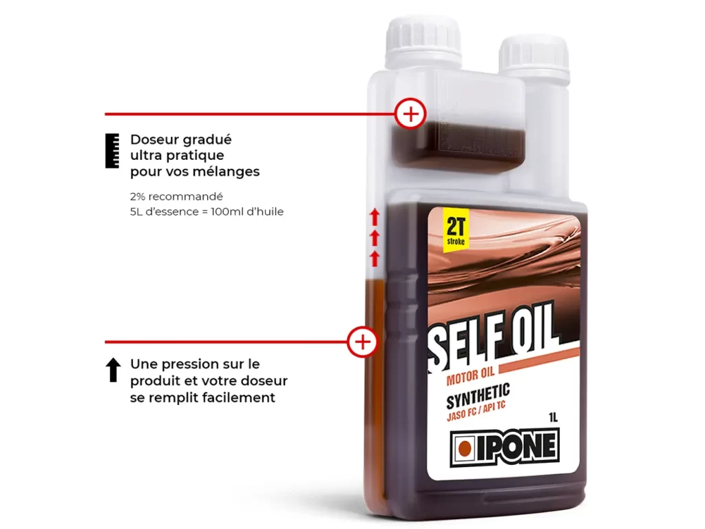 Self Oil es un aceite de motor semisintético de calidad para todas tus máquinas de 2 tiempos, incluidos tus equipos de jardinería, como motosierras, cortasetos, cortacéspedes y otros